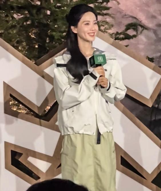 今天参加活动时,刘诗诗的穿搭非常朴素,长袖外套配长裙,非常休闲。